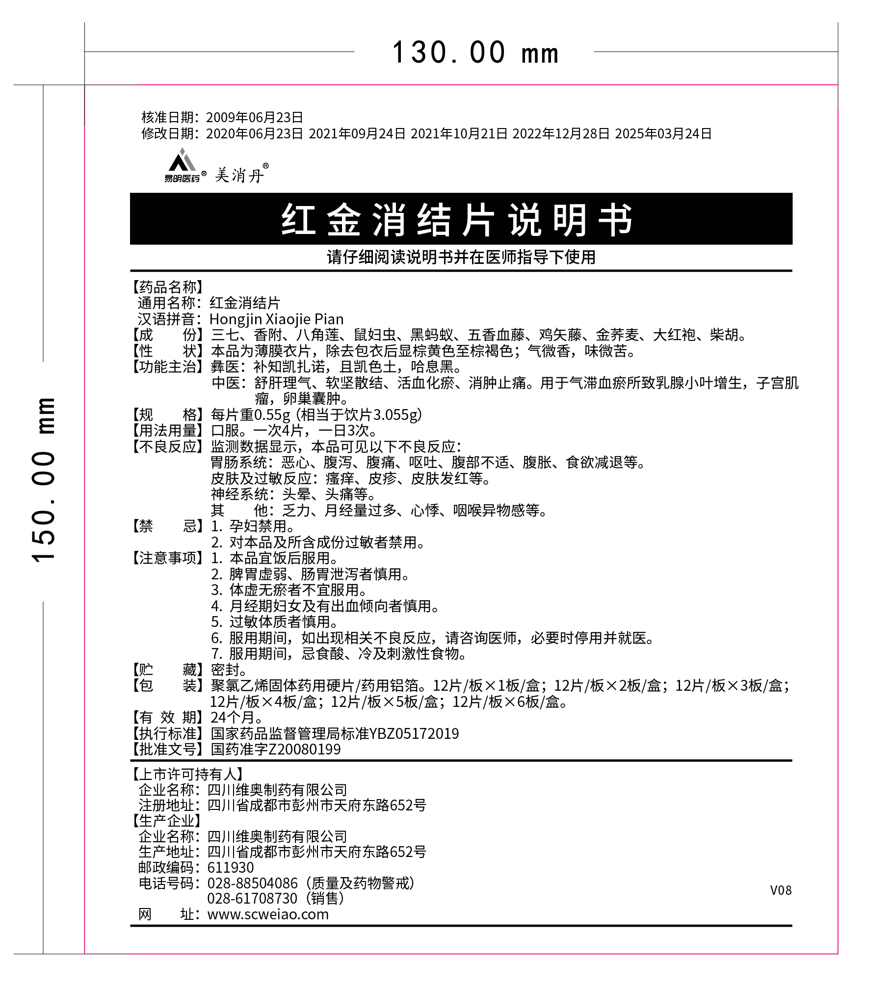 192025-09我司對(duì)紅金消結(jié)片說(shuō)明書(批準(zhǔn)文號(hào):國(guó)藥準(zhǔn)字Z20080199)進(jìn)行修訂